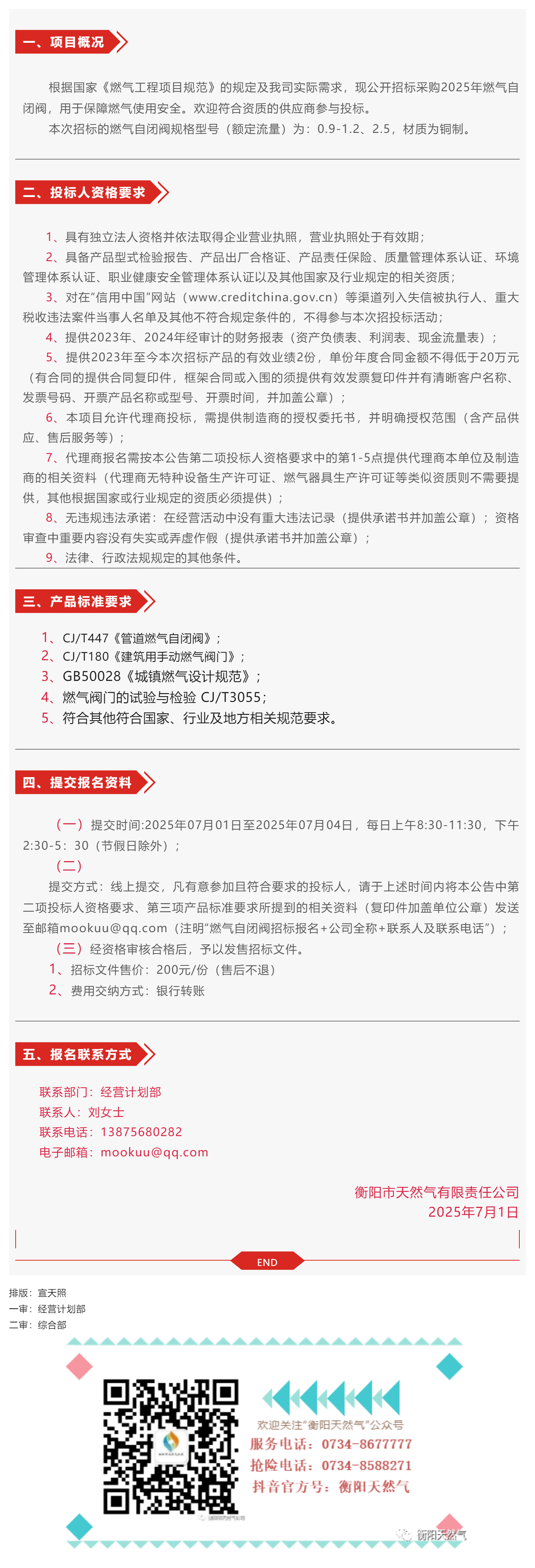 招標公告丨衡陽市天然氣有限責任公司2025年燃氣自閉閥采購入圍招標公告